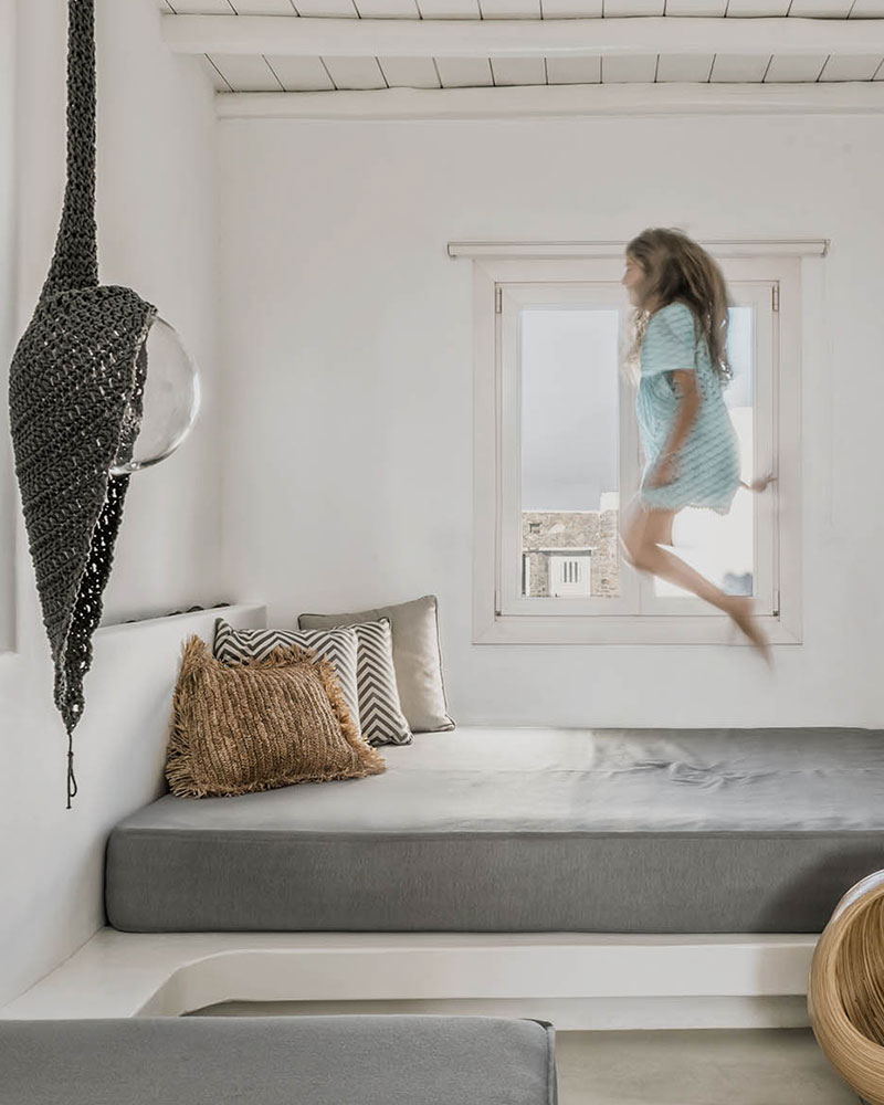 A Family Suite sleeps comfortably up to 4 guests. It is specially designed for space and comfort, therefore for family needs. Some elegant artifacts inspired from the Cycladic architecture gracefully placed to inspire unique family holidays.