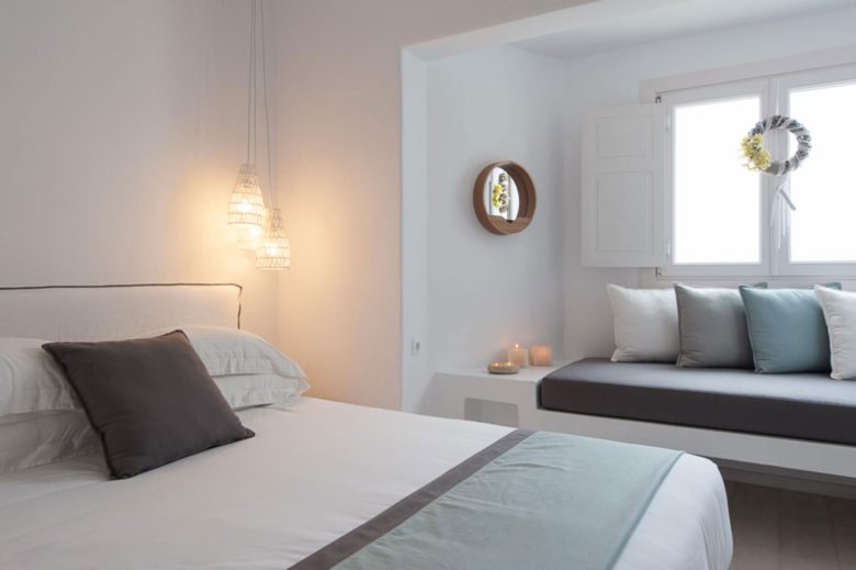 Situated on the upper level of the hotel, the spacious 36 square-metre suite provides a private sitting area with stunning views of the pool and the picturesque Cycladic countryside.
